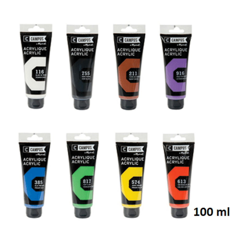 • Oito tubos de tinta acrílica Campus coloridos de 100 ml