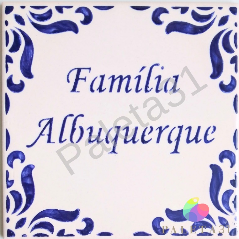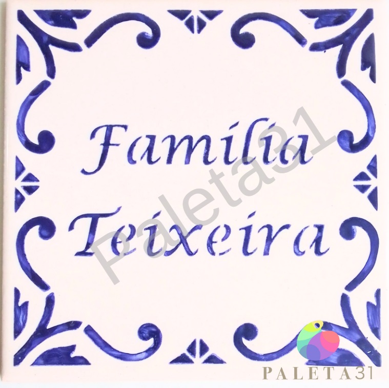 Azulejo vidrado pintado manualmente (apos pintura é cozido em mufla/forno a temperatura superior a 980º) - Coleção Nomes e Numeros : Nome de Famila A Personalizar