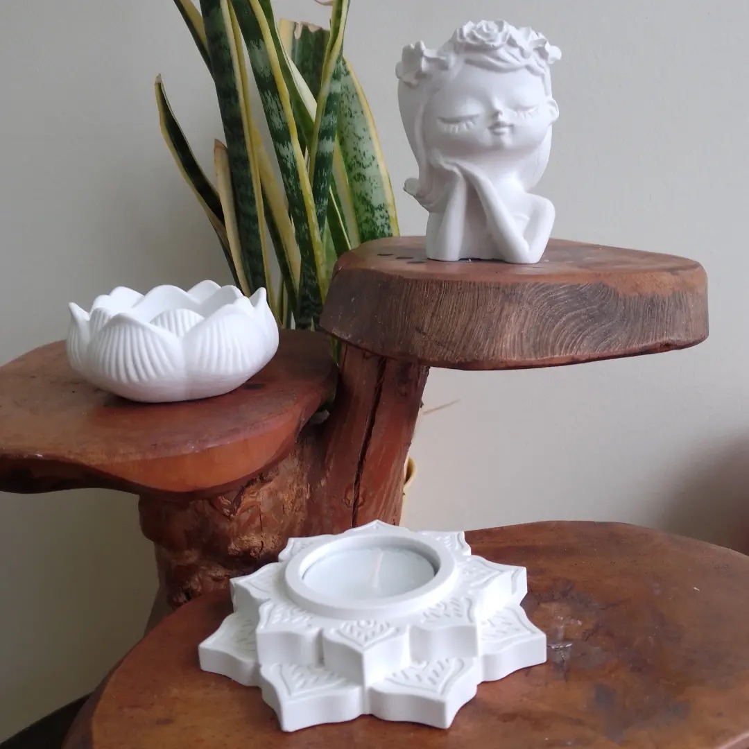Suporte de velas ou mini cachepot em gesso/pó cerâmico