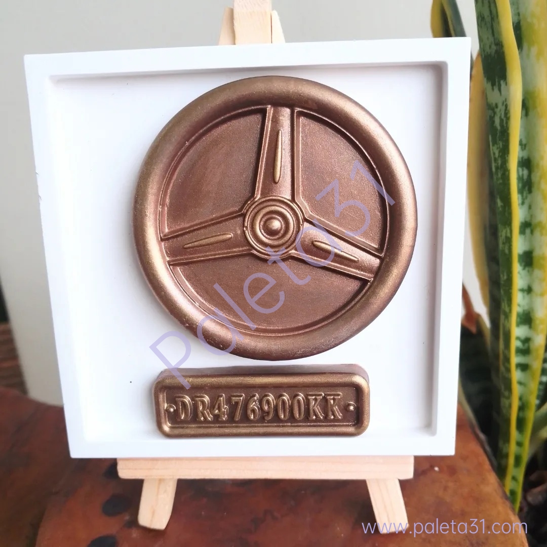 • Placa decorativa com volante bronzeado e código DR476900KK