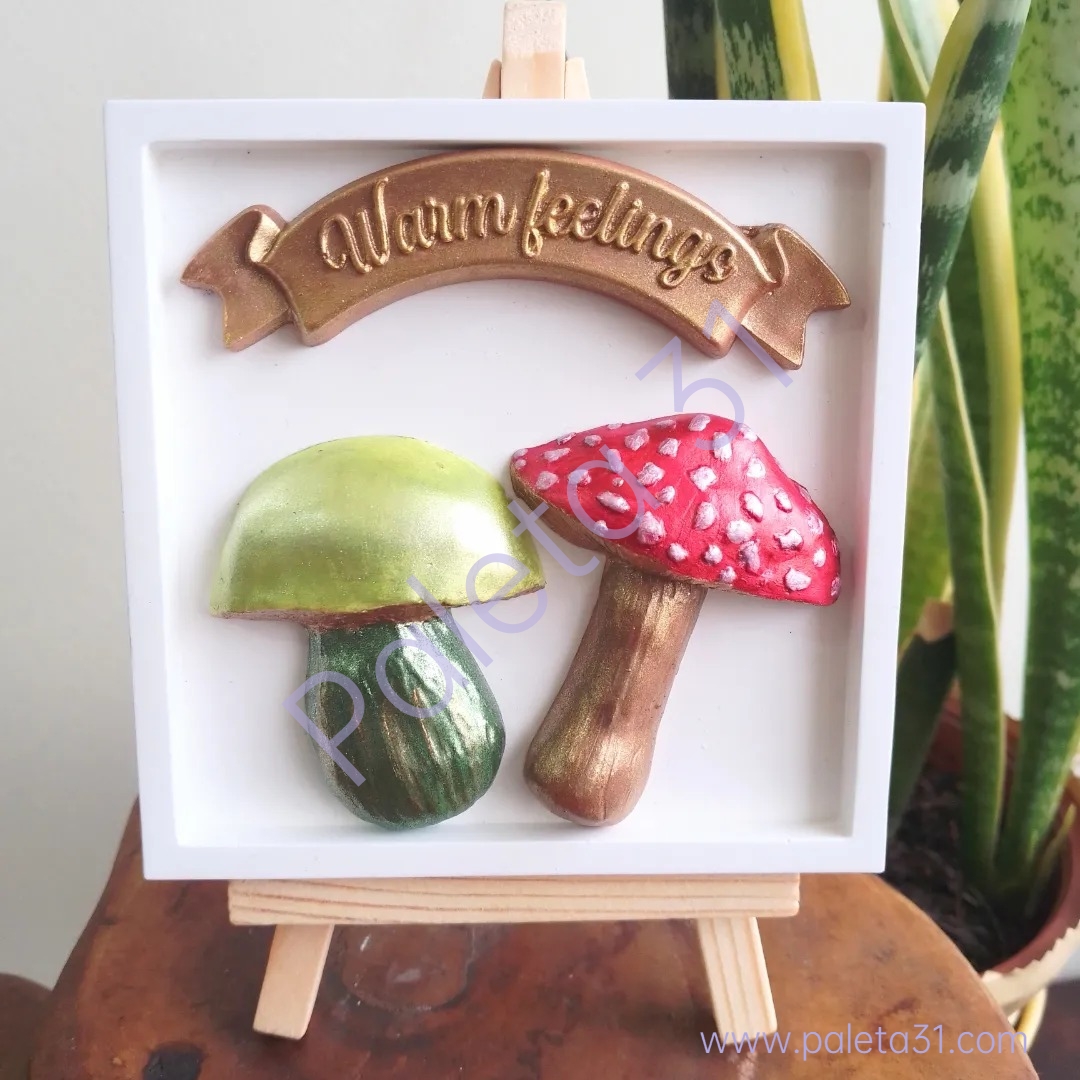 • Quadro decorativo com cogumelos em relevo e texto Warm feelings