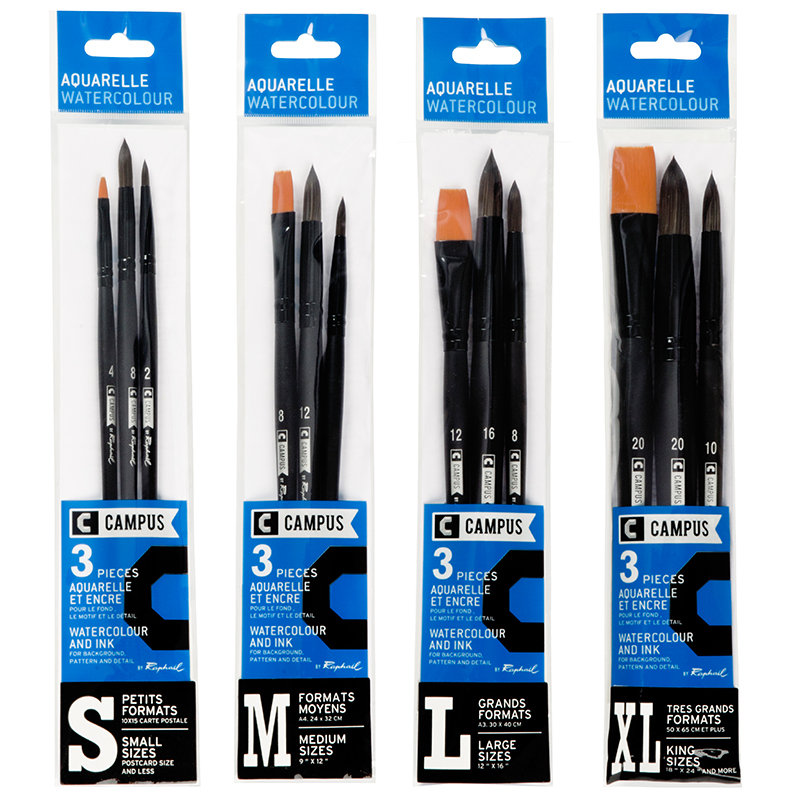 Pack 3 Pincéis Campus para Aguarela 3,05 € Desconto de %. Partilhar Tamanho S M L XL Comprar Contactar Pincéis para Aguarela. Os pincéis são divididos em quatro grupos, podendo escolher dependendo do tamanho da superfície a ser pintada: S, M, L, XL. Cada um dos conjuntos tem pincéis de vários tamanhos. Os pincéis têm cabos de madeira longos, lacados. Marca Campus Tags Aguarela Características