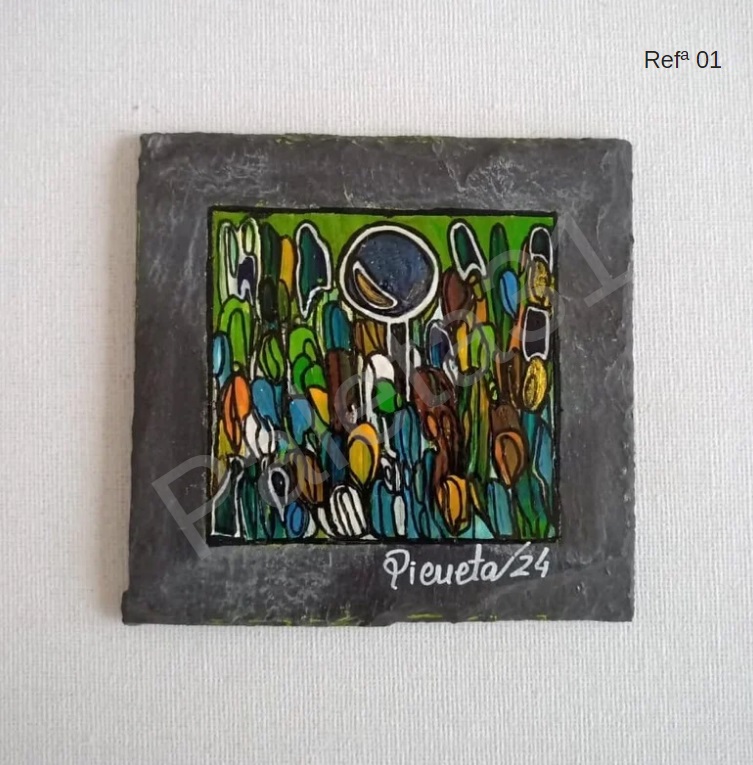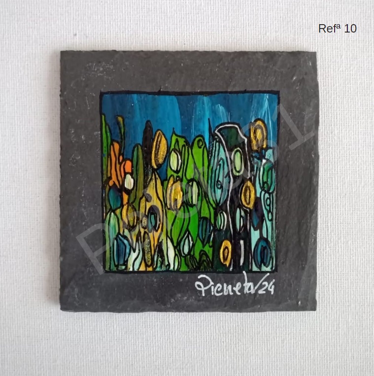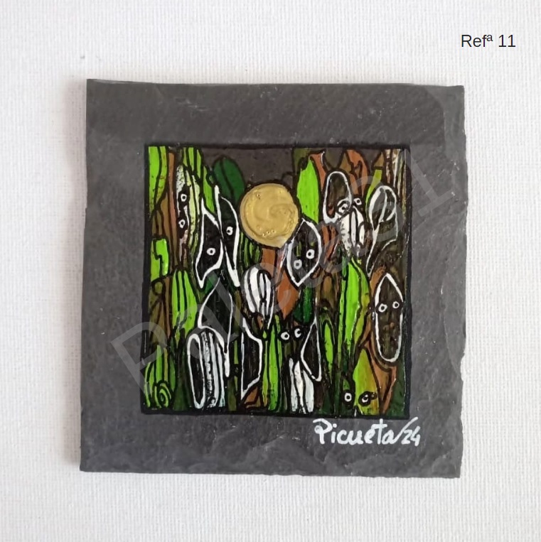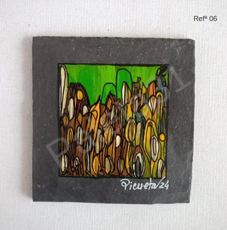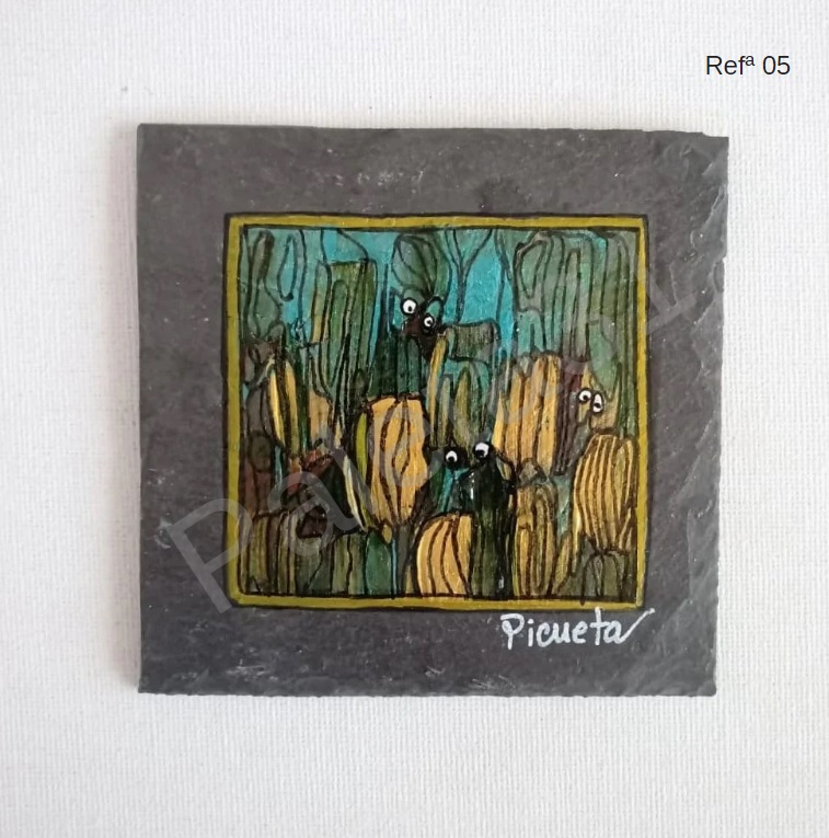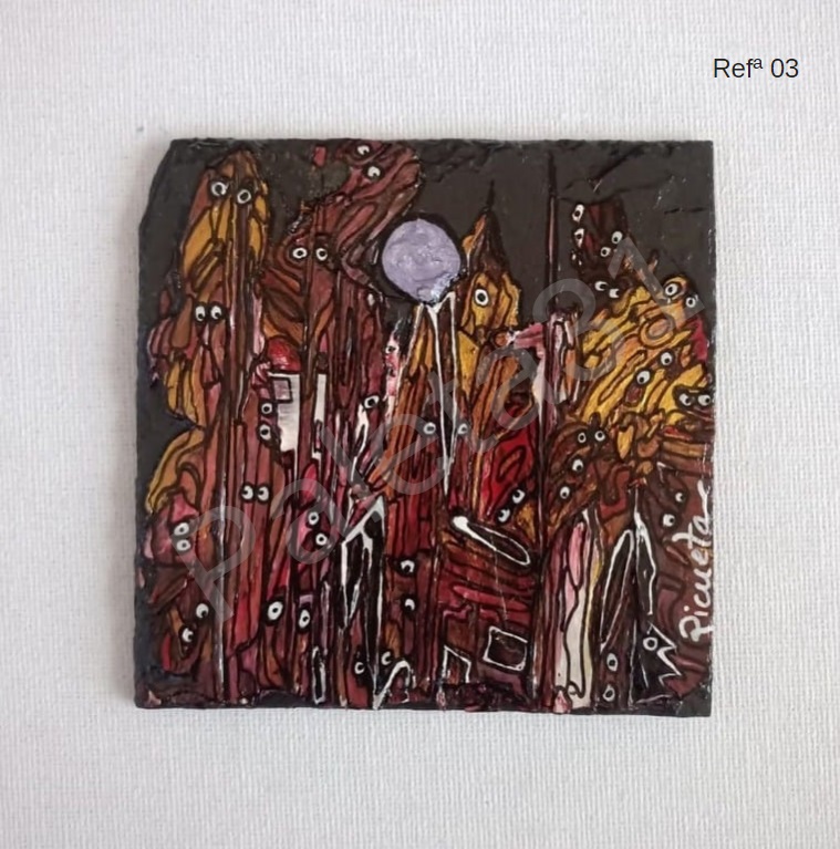 Pintura em Xisto by Picueta (Small Size) 30,00 € Desconto de %. Partilhar Refª 01 02 03 04 05 06 07 08 09 10 11 Comprar Contactar Pintura em Xisto (small size) por Picueta. Cada peça é unica. Embalada em caixa individual, com pequeno cavalete de madeira e certificado de autenticidade passado pela autora. Cada referencia tem a imagem associada da peça a que corresponde. Para encomendas ou mais informações p.f. enviar mensagem. Tamanho: 10x10cm