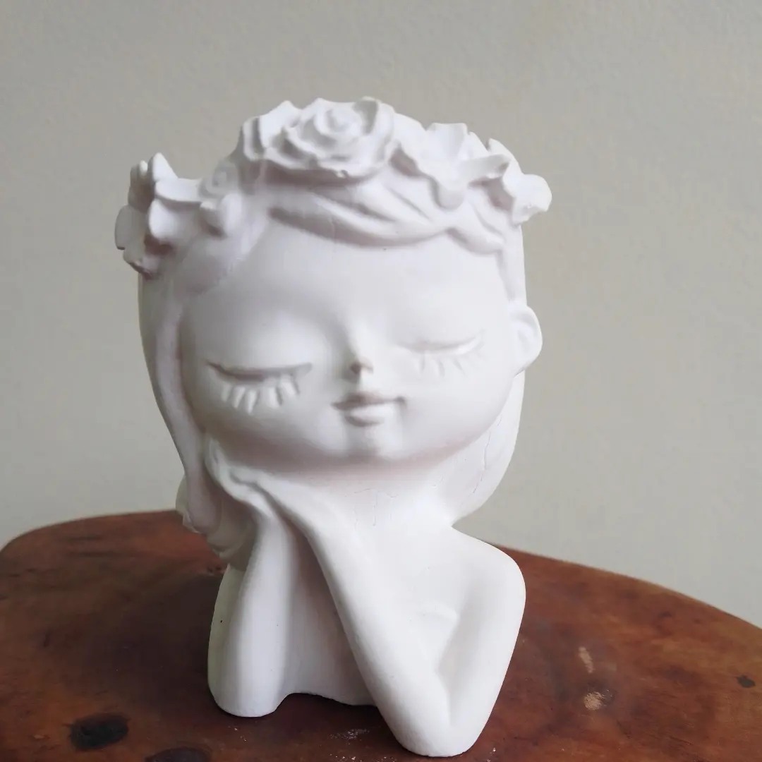 Vaso/cachepot em gesso/pó cerâmico - Menina amorosa